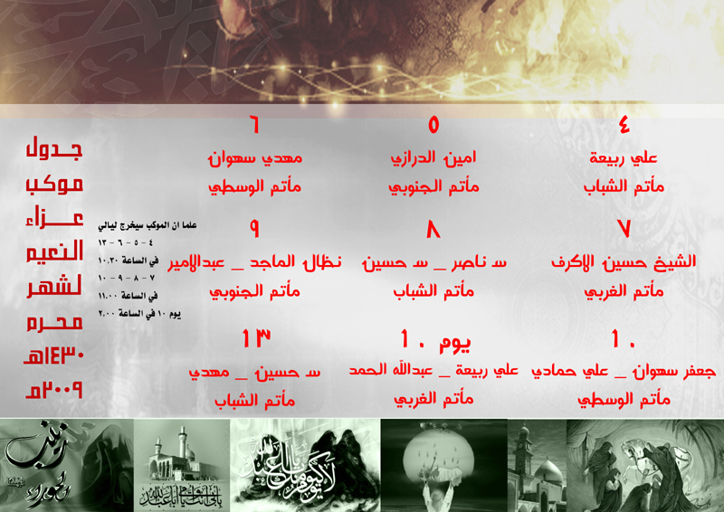 جدول موكب عزاء النعيم لشهر محرم 1430 هـ - 2009 م