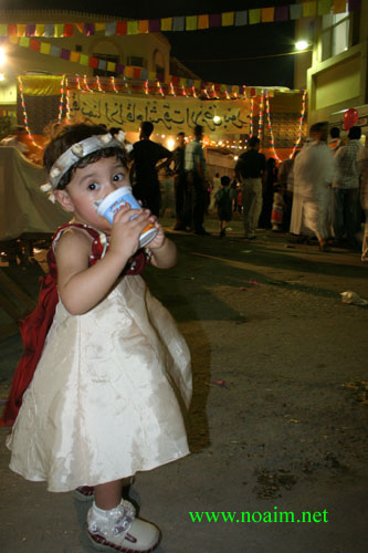 في ليلة من أبهج ليالي السنة عجت شوارع النعيم وطرقاتها بجموع المحتفلين من الصغار والكبار بليلة النصف من شعبان (الناصفة) وهي ليلة مولد منقذ البشرية وأمل المستضعفين وبقية الله في أرضه الإمام المهدي المنتظر عجل الله تعالى فرجه الشريف.