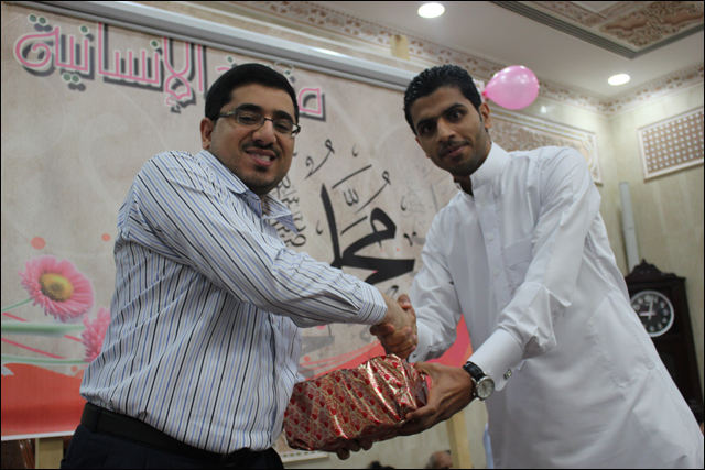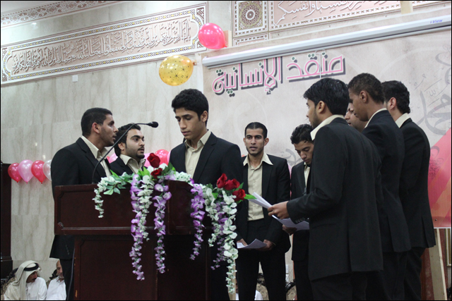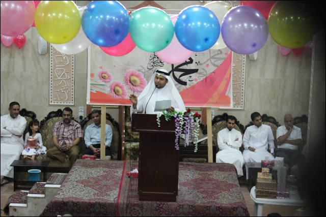 أقام مأتم النعيم الغربي الاحتفال المركزي بذكرى مولد نبي الرحمة وشفيع الأمة النبي المسدد الملقب بالسماء بأحمد أبو القاسم محمد صلى الله عليه وآله وسلم كما نبارك لكم مولد الإمام جعفر الصادق عليه السلام أعاد الله علينا وعليكم في جمع حافل ابتهج فيه الكبير قبل الصغير من ليلة أمس الاثنين الموافق 28 / 1 / 2013م في تمام الساعة 8:00 مساءاً فكان عريف الحفل حسين عبد علي و البداية كانت مع عبدا لله علي رحمة بقراءة آيات من الذكر الحكيم ، وتلتها فقرة سماحة الشيخ رضي القفاص التي كانت بعنوان (( شامة الناس )) الذي بدورة كان يتقل بين الحضور في أرجاء المأتم ، بعد ذلك مشاركة فرقة أنصار الحسين الإنشادية وأبيات شعرية للشاعر أحمد هلال ، وكما جرت العادة في المأتم قراءة المولد والذي كان بصوت عريف الحفل حسين عبد علي و ختاماً توزيع الجوائز على الحضور