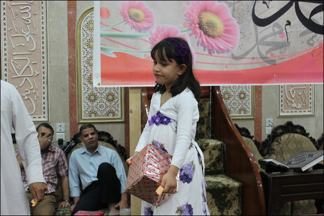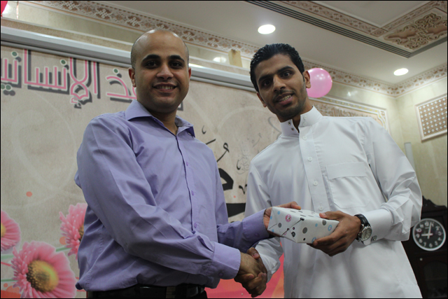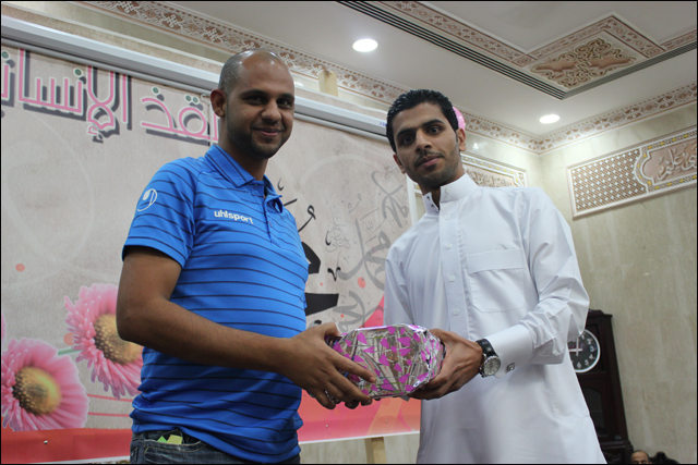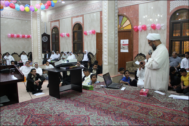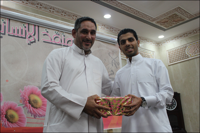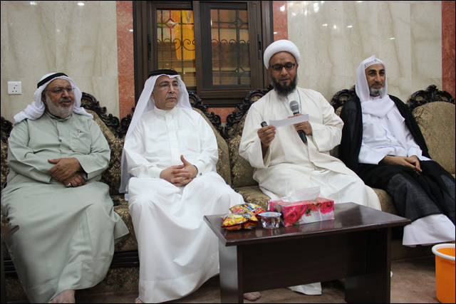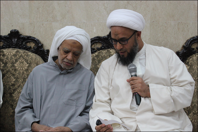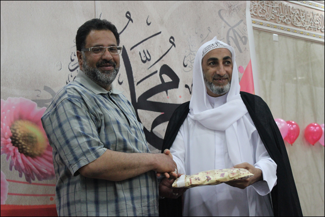 تكريم سماحة الشيخ عقيل الماضي للحاج حسن رحمة أحد الكوادر العاملة بالمأتم وخدمة طالت السنوات وتسلمها عنه ابنة عبدالله بالنيابة