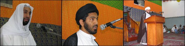 ثم ألقى سماحة الشيخ محمد نوح قصيدة من تأليف السلطان عبدالحميد خان (ألفها عام 1191هـ) وكانت منقوشة على ضريح المصطفى (ص) إلا أن السلفيين محو أكثر أبياتها بحجة أنها تتضمن معتقدات شركية. كما ألقى السيد هاشم الموسوي قصيدة من نضمه في مدح النبي (ص) كما تضمنت بعض القضايا المعاصرة. ثم كان لفرقة المدرسة الحيدرية أنشودة في مدح رسول الله (ص)، تلتها قراءة قصة ولادته (ص) بالطريقة البحرانية التقليدية (ميلاد). وأخيرا كانت وجبة العشاء على حب رسول الله (ص) في صالة السيد حسين الغريفي رحمه الله.
