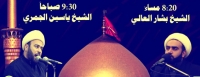 برنامج ماتم النعيم الغربي للقراءة المسائية و الصباحية . سماحة الشيخ بشار العالي في تمام الساعة 8:20م ، شيخ ياسين الجمري في 9:30صباحاً.
