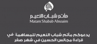 يدعوكم مأتم شباب النعيم للمساهمة بإحياء مجالس الحسين (ع) بشهر صفر
