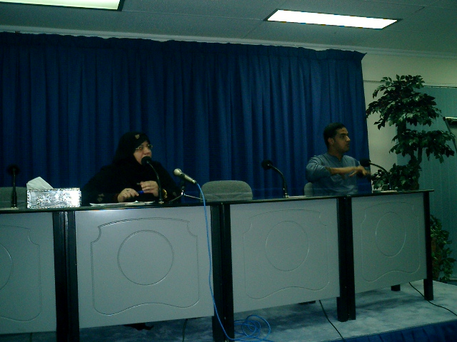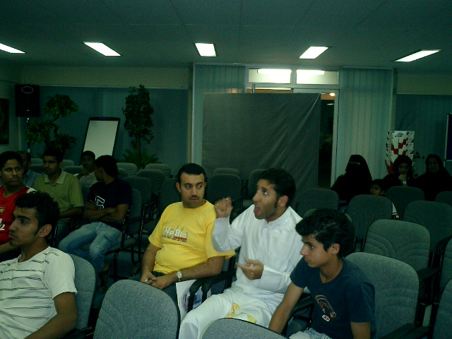 عندما حلّت الساعة الثامنة والنصف، كان أكثر جماعة الصمّ وصلوا عند الباب الخارجي للملتقى الأهلي، بينما تأخّر بعضهم لذهابه إلى «النادي الأهلي»، اشتباهاً بالمكان الذي ذكر في المسجات الهاتفية التي وصلتهم. المهم عندما وصل أصحابنا في الوقت، لم يظهر أي من المشاركين ما عدا الكاتبة والناشطة شعلة شكيب. وبفعل الوضع المرتبك وغير الطبيعي تردّدتْ في بدء المحاضرة، وحدّدت ربع ساعة فقط للحديث، ولكن طال الحديث لأكثر من ساعة ونصف الساعة. وكان يصطحب المجموعة مترجمٌ (متطوّع) للغة الإشارة، كان حلقة الوصل مع المحاضِرة.