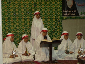 -أما عن أنشطة اللجنة النسائية لمجلس طلاب العلوم الإسلامية وصندوق النعيم الخيري 1- الاحتفال الموحد لأهالي منطقة النعيم والبرهامة حيث تم الاحتفال الموحد لأصحاب الكساء وهم - فاطمة وأبوها وبعلها وبنوها- وكذلك الاحتفال بمولد الأمام الحجة عليه السلام وعيد الغدير الأغر والاحتفال يكون بإحدى المأتم النسائية الكبيرة للمنطقتين وفي تاريخ 16/8/2006م سيكون هناك الاحتفال الموحد لمولد وليد الكعبة الإمام علي عليه السلام وسيكون في البرهامة وسيتم توفير باصات لأهالي منطقة النعيم والدعوة عـــــــامة لجميع نســاء المنطقة |