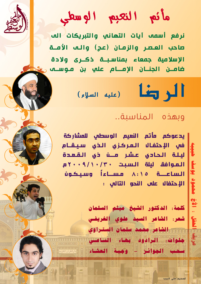 إعــــــلان : الاحتفال بمولد الإمام علي بن موسى الرضا (ع) .. مأتم النعيم الوسطي