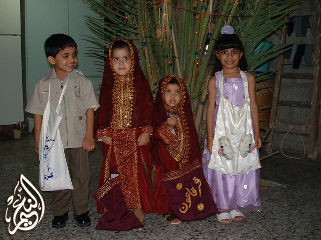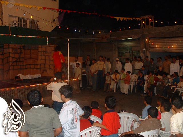 الأطفال يشاهدون مسرحية عرضت قرب حوزة الغريفي