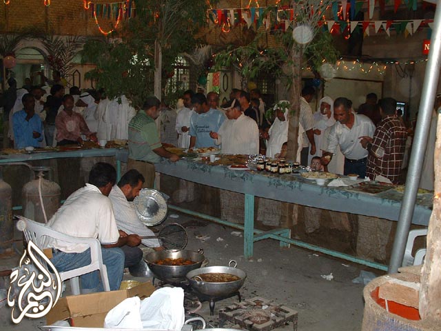 وابتدأت أعمال هذه الليلة المباركة قبيل صلاة المغرب بزيارة الأهالي لقبور موتاهم لقراءة الفاتحة والدعاء لهم اتباعا لسنة النبي وأهل بيته الأطهار. وفي وقت مبكر من الليل لم يتجاوز نصف ساعة من بعد صلاة المغرب خرج الأطفال بأكياسهم الملونة يرددون الأناشيد الشعبية التي تقال بهذه المناسبة متنقلين من بيت لبيت لجمع الحلويات والمكسرات والقطع النقدية. ولم يتأخر الكبار في بدأ الاحتفال بقراءة قصة المولد في المآتم، وتبادل التهاني بالمناسبة، وتوزيع الأطعمة.